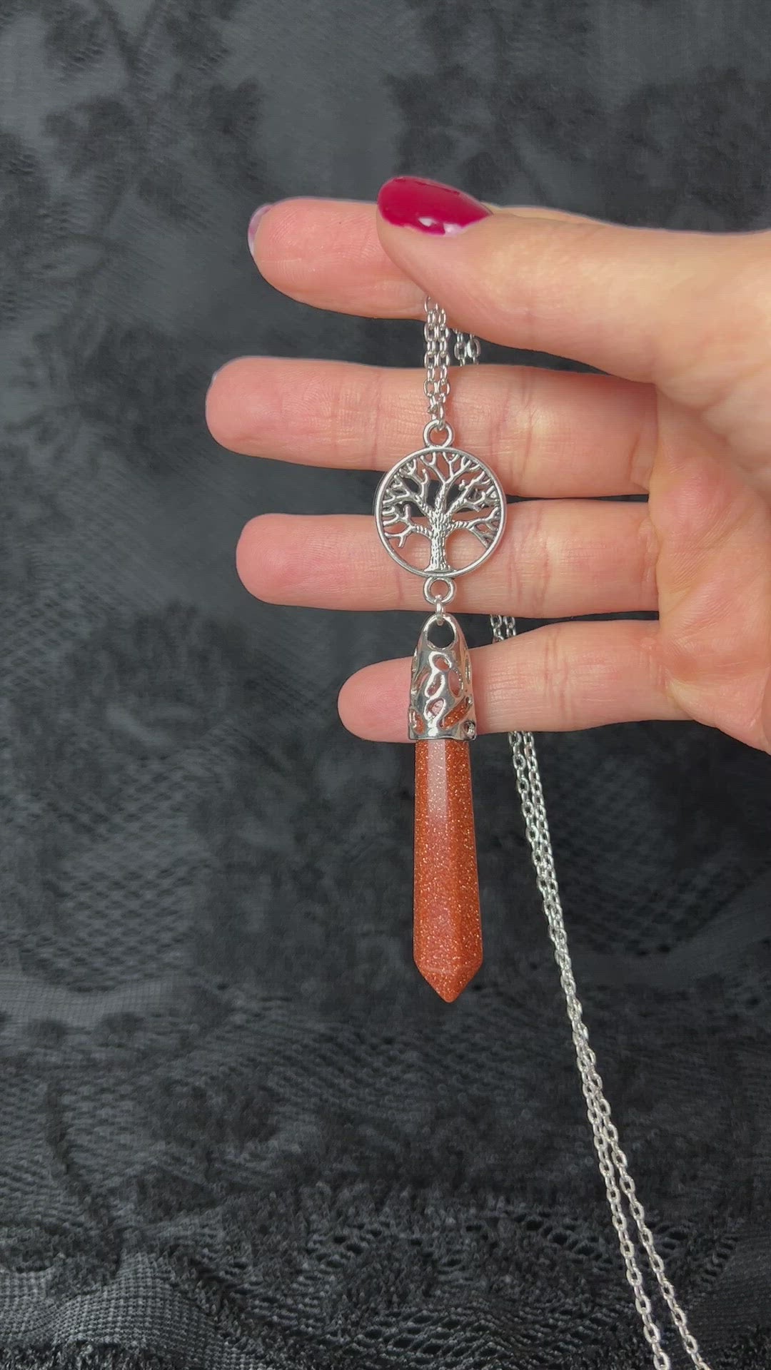 Vous ne savez jamais quand vous aurez besoin de votre pendule ? Ce collier pendule en pierre dorée sera parfait !