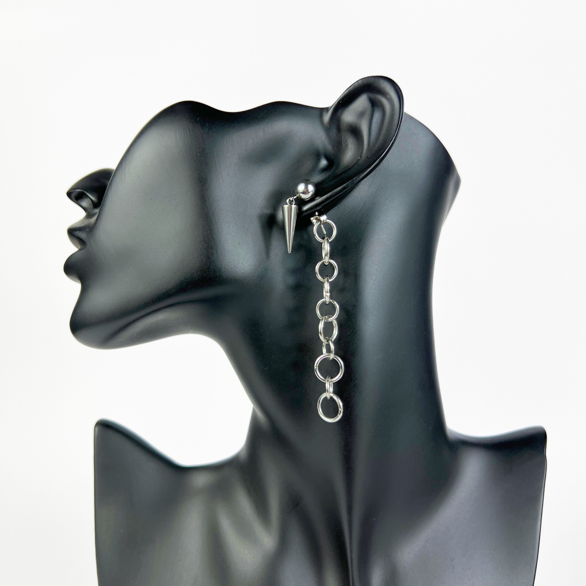 Discover these stunning chainmail earrings, handcrafted with care using high-quality stainless steel. On the front, big studs are adorned with spikes. On the back, the closure has a chunky chain. Why would we wear earrings interesting only on the front when it's possible to wear such original jewelry? With the backchain, these earrings will add an original touch to any outfit.