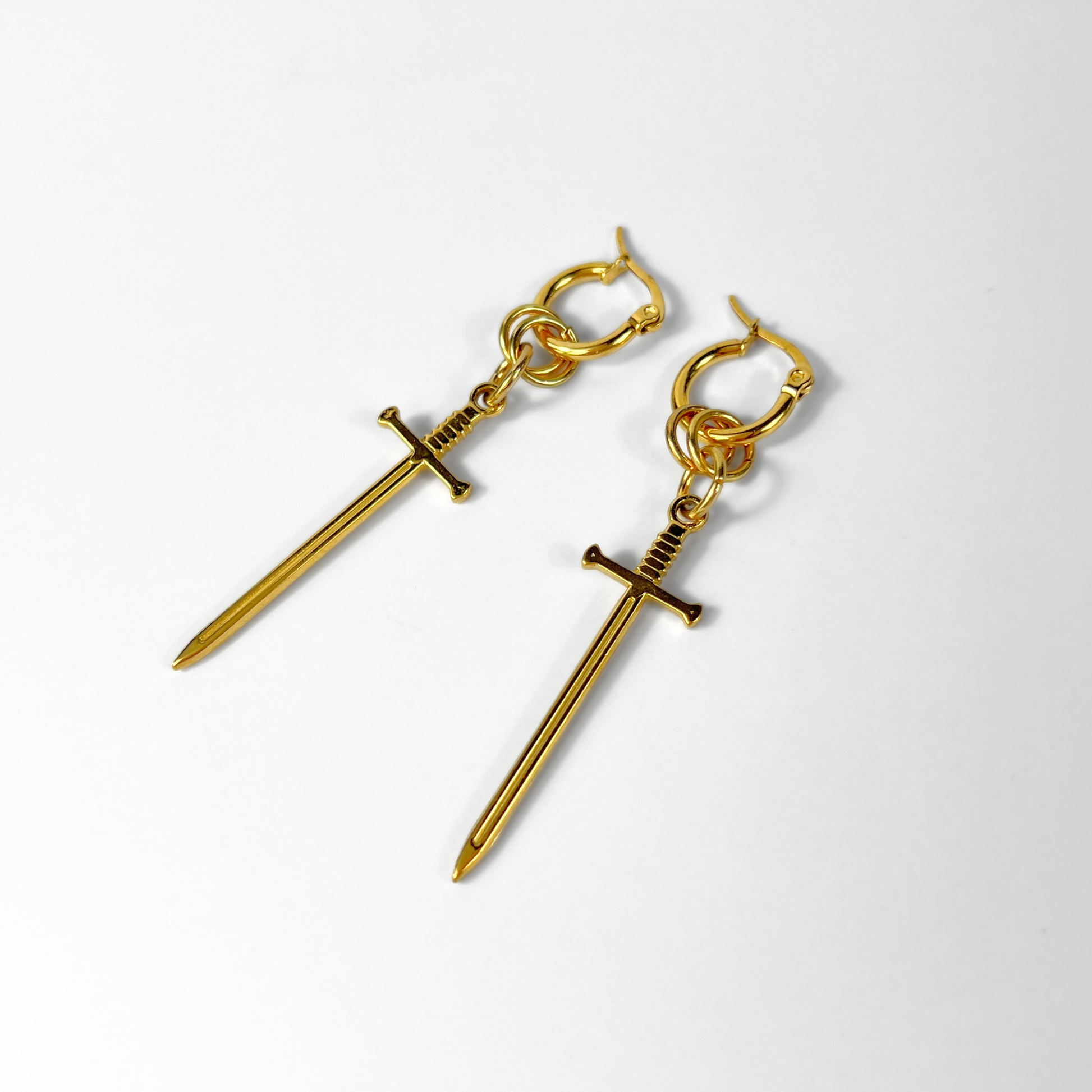 From your casual outfits to your most extravagant costumes, these original golden sword earrings will complete all your looks! Swords and hoops are paired in an elegant way to create this gothic, medieval fantasy style. Sword earrings are also the best piece of jewelry to add a punk touch to your style. Worn with a black blazer, they will be the perfect piece to achieve a corporate gothic style. These earrings are comfortable and are made with stainless steel and 18k gold-plated stainless steel. They also have a secured closing.