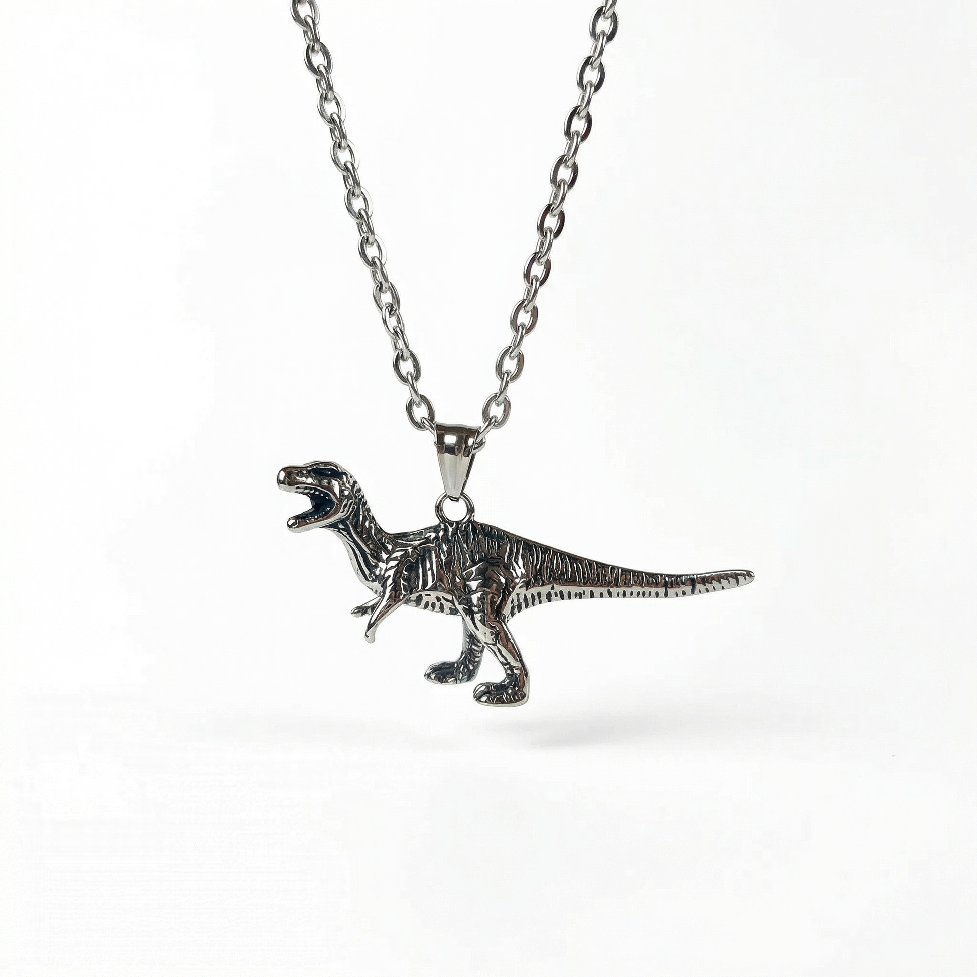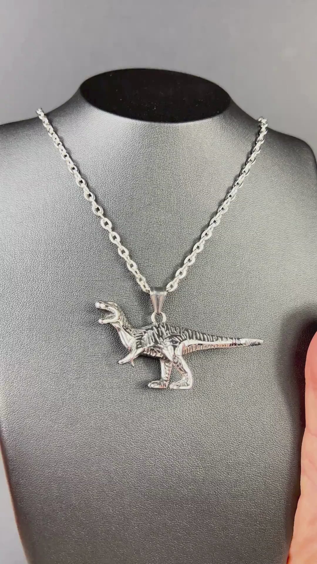 Give the most interesting twist to your look by wearing this dinosaur necklace! The velociraptor, clever and ferocious, will say a lot! This original pendant necklace will become your favorite, or a perfect necklace for someone passionate about paleontology. Made of stainless steel, hypoallergenic, resistant, and waterproof, this piece of jewelry is an investment as you'll wear it every day. When you need to feel inspired to act quickly and be strategic as a raptor, wear your necklace to feel empowered by it.Dimensions: