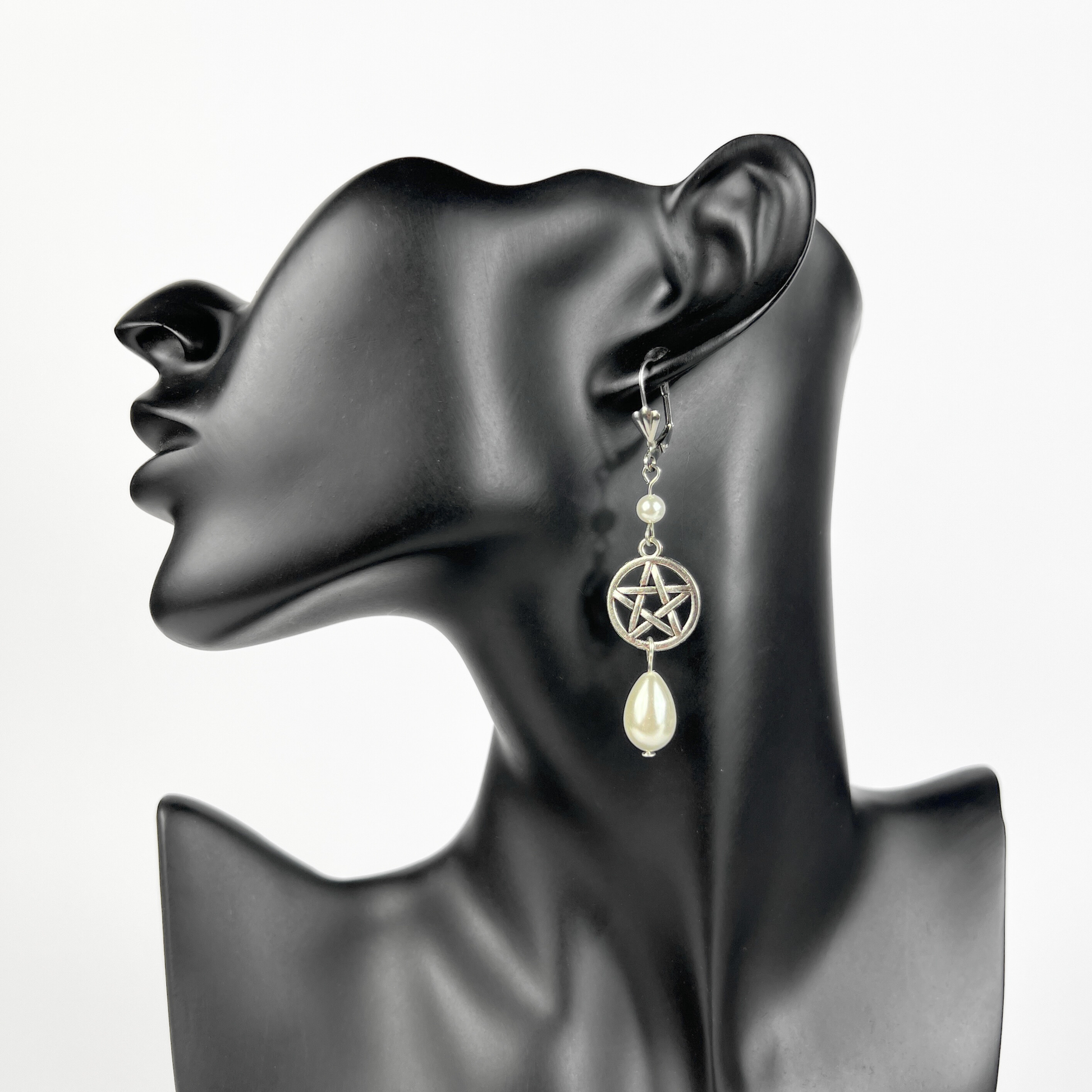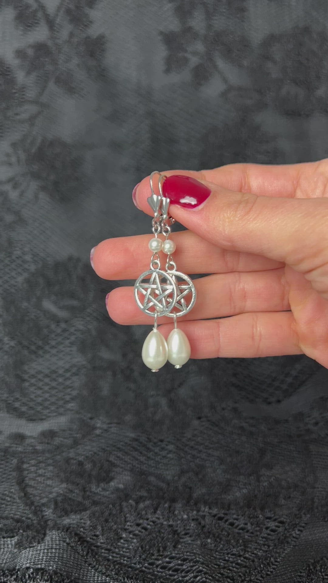 What an elegant witch would wear during the Victorian and Edwardian eras? That's the question I asked myself to create these elegant, retro, and witchy earrings. The pentacle symbolizes the five elements united (air, water, earth, fire, and ether). An important symbol in witchcraft, Wicca, paganism, I embellished it with pearls. I hope these earrings will inspire you!